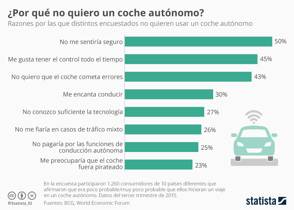 - Analiza los resultados de la encuesta «¿Por qué no quiero un coche autónomo?»
