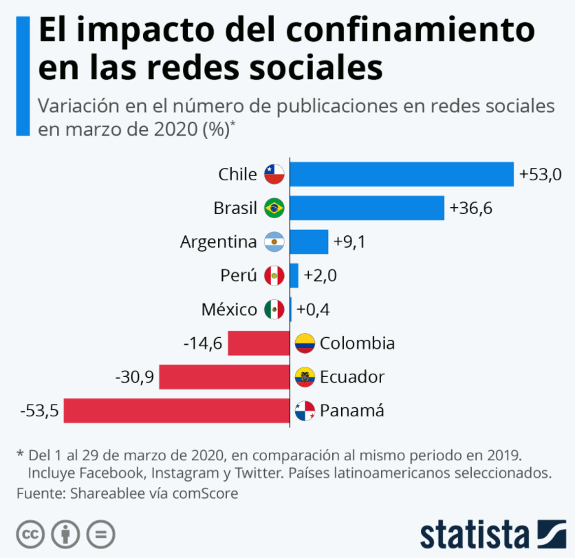 Mira las siguientes infografías sobre el uso de las redes sociales durante la pandemia. Analice la información presentada. Luego escribe dos párrafo detallando tu interpretación de la información, resumiendo los puntos importantes y proveyendo tu opinion personal.